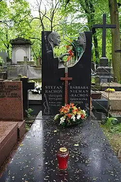 - ↑ Cmentarz Stare Powązki: STEFAN RACHOŃ, [w:] Warszawskie Zabytkowe Pomniki Nagrobne [dostęp 2019-12-19].