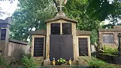 - ↑ Kwatera FA, rząd: zach, miejsce: po lewej Hankiewiczów.