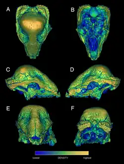 - ↑ Snively, E., Theodor, J. M.. Common Functional Correlates of Head-Strike Behavior in the Pachycephalosaur Stegoceras validum (Ornithischia, Dinosauria) and Combative Artiodactyls. „PLoS ONE”. 6 (6), s. e21422, 2011. DOI: 10.1371/journal.pone.0021422. PMID: 21738658. PMCID: PMC3125168. Bibcode: 2011PLoSO...621422S.