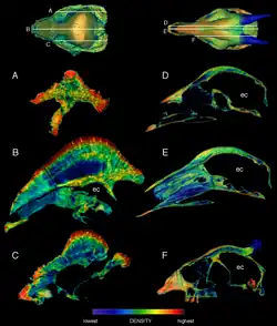 - ↑ K. Padian; J.R. Horner. The evolution of 'bizarre structures' in dinosaurs: biomechanics, sexual selection, social selection or species recognition?. „Journal of Zoology”. 28 (1), s. 3–17, 2011. DOI: 10.1111/j.1469-7998.2010.00719.x.