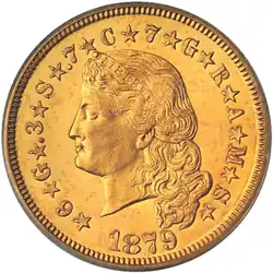 - ↑ 1879 $4 Flowing Hair (Proof), „PCGS” [dostęp 2022-10-03].