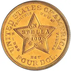 - ↑ The $4 Stella Gold Coin: A Failed Idea That Collectors Loved, „CoinWeek” [dostęp 2022-09-30].