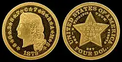 - 1 2 3 4 Four Dollar Piece - Early Gold Coins (1879-1880), „USA Coin Book” [dostęp 2022-09-29].