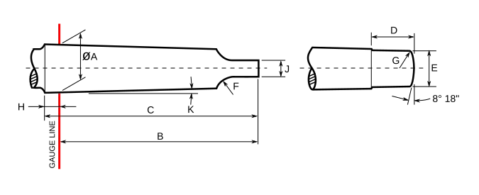 | Rozmiar | Zbieżność | A | B (max) | C (max) | D (max) | E (max) | F | G | H | J | K |