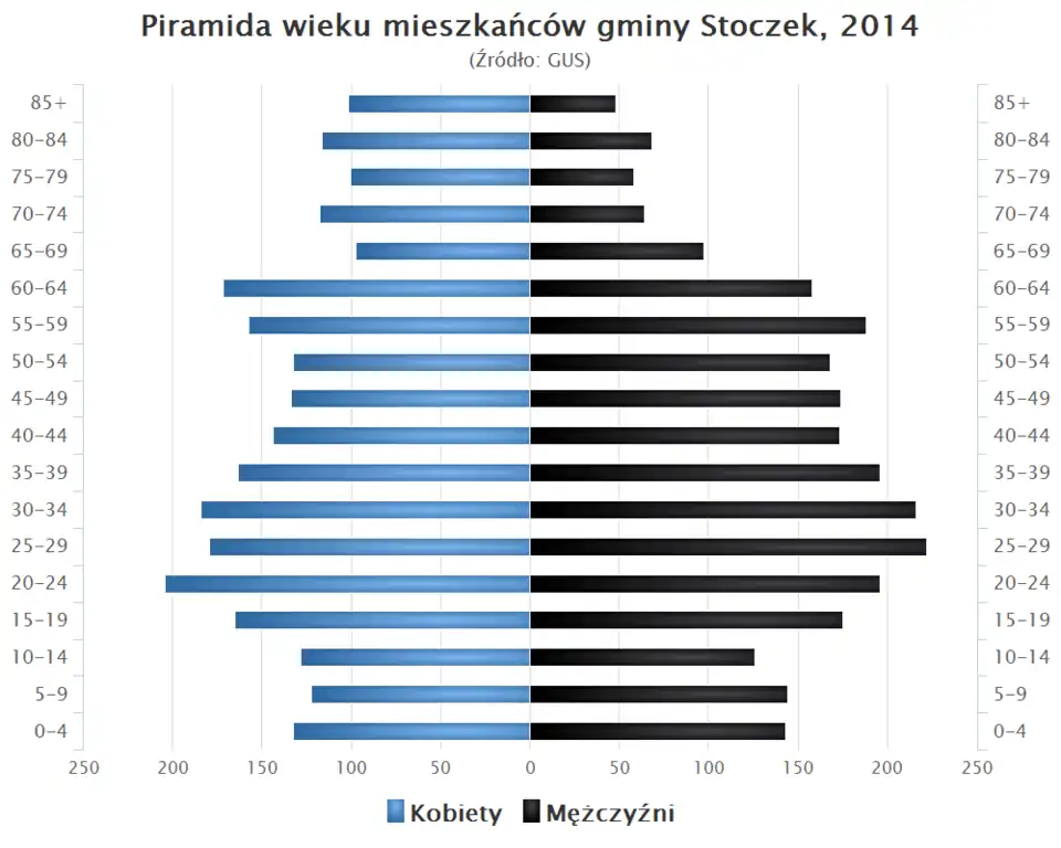 - Piramida wieku mieszkańców gminy Stoczek w 2014 roku[8]