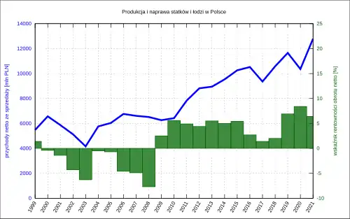 W Polsce realizuje się 10 procent europejskiej produkcji stoczniowej, a więc więcej niż w Wielkiej Brytanii, Francji czy Hiszpanii. W 2006 roku w przemyśle stoczniowym zatrudnionych było 23 tys. ludzi, a w 2015 31 tys.[2]