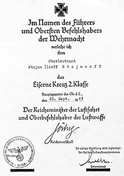 Stojanow był pełnym kawalerem Orderu Waleczności i jedynym lotnikiem, który dostąpił tego zaszczytu. Pierwszy order otrzymał 7 sierpnia 1943 roku osobiście od cara Borysa III, co czyni go pierwszym bułgarskim oficerem II wojny światowej, który został nim odznaczony[2]. W imieniu dowódcy Luftwaffe Reichsmarschalla Hermanna Göringa został odznaczony także niemieckim Krzyżem Żelaznym II klasy.