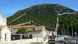 Ston otoczony jest 890-metrowymi średniowiecznymi murami miejskimi z czasów Republiki Dubrownickiej, kiedy miasteczko było jej ważnym fortem. Dodatkowe zewnętrzne fortyfikacje obejmują także Mali Ston, mniejszą miejscowość leżącą nad brzegiem zatoki Malostonski zaljev oddzielającej półwysep od lądu stałego; w zatoce tej hodowane są ostrygi i inne małże. System fortyfikacji, utworzonych wokół Stonu skutecznie zapobiegał zdobyciu miasta przez Turków. Łączna długość murów wynosiła 5,5 km – na fortyfikacje składało się 40 wież i 7 twierdz, z których najważniejsze trzy to Veliki Kaštio (urządzono tu spichlerz i zbrojownię; twierdza ta pełniła także funkcje mieszkalne) w miasteczku Ston, Koruna (Mali Ston) oraz twierdza na wzgórzu Podzvizd. Twierdzę Koruna rozpoczęto budować w roku 1347; miała ona pięć wież i port, który służył przez stulecia do eksportu soli, pozyskiwanej w rejonie miasta.