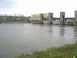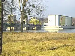 Na zewnętrznej części budynku elektrowni, kanały odpływowe rozdzielono filarami betonowymi. W głowicach, których znajdują się wnęki na zamknięcia od strony wody dolnej. Zamknięcia te kładzione są z wykorzystaniem suwnicy bramowej. Od strony wody górnej na wlotach do poszczególnych komór turbinowych umieszczone są zamknięcia zasuwowe uruchamiane za pomocą suwnicy bramowej, przed zamknięciem na wlotach umieszcza się kratę średnią.