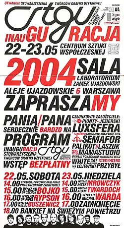 Otwarcie European Design Festival, Muzeum Plakatu w Wilanowie, 2019 r.European Design Awards (EDA)[47] 2019 r. STGU jako współorganizator (Mateusz Machalski) było odpowiedzialne za otwarcie European Design Festival w Muzeum Plakatu w Wilanowie. Została przygotowana wystawa (wernisaż otwierał Festiwal) polskich plakatów pt. „123 polskie plakaty, które warto znać”[48], wydana publikacja i zorganizowane garden party w ogrodzie należącym do muzeum.