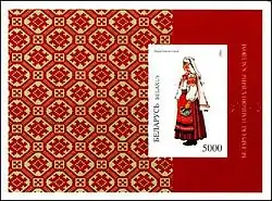 Znaczek pocztowy z serii „Białoruskie stroje ludowe” (projektant Michaś Ramaniuk)