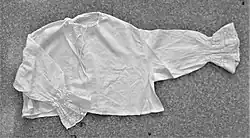 | koszula | płócienna koszula z długimi rękawami zakończonymi mankietem oraz z niewielkim kołnierzykiem, wykończonym mereżką[3]. | |
