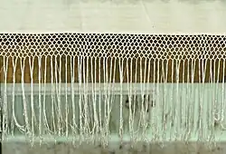 | tybetka | chustka z cienkiej wełenki noszona na głowie i wiązana pod szyją lub zarzucana latem na ramiona. Ozdobiona frędzlami i motywami kwiatowymi[1][2]. |
