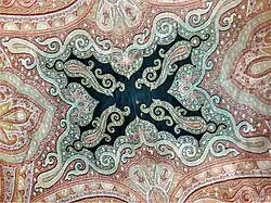 | szaltuch | kwadratowa lub prostokątna chustka w turecki wzór, rzadziej w kratę, o wymiarach ok. 130 -180 cm. Złożoną szalowo lub po przekątnej, noszono latem zarzuconą na ramiona[1]. | |