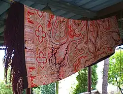 | jedbowka | nieduża kwadratowa chustka z jedwabiu, produkcji fabrycznej, z charakterystycznym deseniem w tonacji niebieskiej, zielonej lub fioletowej (zależnie od statusu noszącego)[3] | |