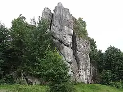 Na szczycie skały znajdowała się wieża obronna[2]. Strażnica była niewielka, ale ukształtowanie terenu wokół niej wskazuje, że prawdopodobnie u podnóża skały Zamkowej znajdowały się pomocnicze pomieszczenia chronione wałem i fosą[1].