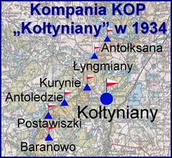 - strażnica KOP „Kurynie” ⇔ strażnica KOP „Antołksna” – 1929[2], 1931[3], 1932[4], 1934[5] i w 1938[6]