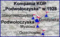 - strażnica KOP „Podwołoczyska” ⇔ strażnica KOP „Rożyska” – 1938[7]