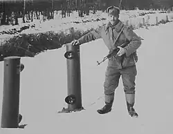 - ↑ Prace nad skonstruowaniem urządzenia sygnalizacyjnego na podczerwień podjęto w latach 1958–1960. Organizatorzy i konstruktorzy nowej sygnalizacji postawili sobie za cel stworzenie wzdłuż granicy ciągłej i niewidocznej linii dozorowania, która miała sygnalizować każde naruszenie granicy. Prototyp urządzenia sygnalizacyjnego skonstruowali pracownicy Instytutu Fizyki Polskiej Akademii Nauk. Próbę eksploatacyjną prototypowego urządzenia przeprowadzono w roku 1960 na odcinku Łużyckiej Brygady WOP, a następne egzemplarze zamontowano w Pomorskiej Brygady WOP. Eksploatacja próbna, którą prowadzono 2 lata, potwierdziła zalety tego urządzenia i jego przydatność w ochronie granicy. Zamontowanie urządzenia wymagało poważnych prac inżynieryjno-saperskich. Oczyszczony pas terenu musiał być bowiem ogrodzony z dwu stron siatką chroniącą przed zwierzyną, która niepotrzebnie czyniłaby alarmy. Prace te prowadzono z dużym natężeniem[17].