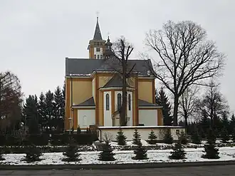 Pierwszy drewniany kościół parafialny istniał w latach 1511-1944. Obecny kościół wybudowany został w latach 1934-1950 wg projektu Franciszka Mączyńskiego.