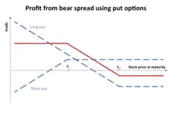 Strategia polega na nabyciu opcji sprzedaży instrumentu podstawowego o określonej cenie wykonania i jednoczesnym wystawieniu opcji sprzedaży na ten sam instrument, ale z niższą ceną wykonania. Obie opcje mają ten sam termin wygaśnięcia. Premia opcji sprzedaży jest tym większa, im wyższa pozostaje cena wykonania, wobec czego wartość opcji kupionej jest wyższa od wartości opcji sprzedanej. Strategia ta jest więc strategią typu debit. Wymaga ona wkładu początkowego.