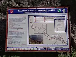 Wzdłuż kanionu prowadzi szlak turystyczny oraz ścieżka edukacyjna z przystankami, przy których zamontowano tablice informacyjne w języku słowackim i angielskim. Opisy na tych tablicach podają, że[2]: