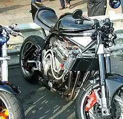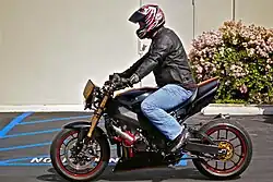 - ↑ Seate, Mike (2007), How to Build a Pro Streetbike, MBI Publishing Company, p. 95, ISBN 978-0-7603-2450-9, "...examples of the style began showing up almost by accident (pardon the pun) on the stunt riding scene early on. Just as many European riders had crafted naked bikes out of crash-damaged sportbikes, many American freestyle riders simply came to the conclusion that their CBR 900RR would ride better on one wheel with the fairing removed, the clip-ons traded for a set of tubular bars, and a custom bent exhaust pipe that didn't scrape on the pavement during wheelies."