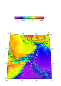 Oddziela leżącą na wschodzie płytę arabską od płyty indoaustralijskiej oraz na krótkim dystansie od płyty afrykańskiej.
