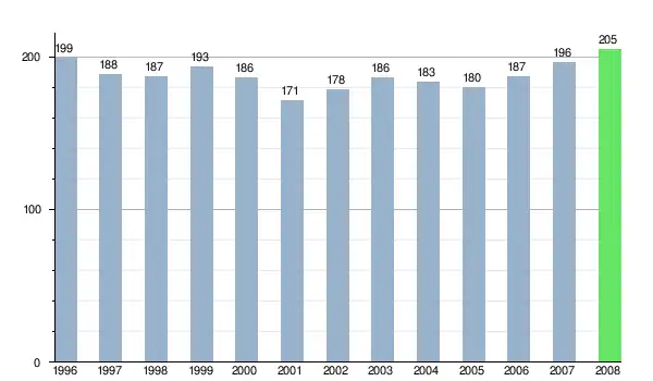 Zmiany liczby ludności w miejscowości Stretavka od 1996 roku.