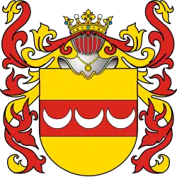 - ↑ Tadeusz Gajl: Herbarz polski od średniowiecza do XX wieku : ponad 4500 herbów szlacheckich 37 tysięcy nazwisk 55 tysięcy rodów. L&L, 2007. ISBN 978-83-60597-10-1.