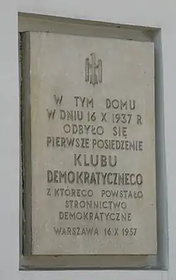 - ↑ Edward Wisz. Zakończenie uroczystości związanych z 25-leciem Stronnictwa Demokratycznego. „Nowiny”, s. 1, nr 107 z 7 maja 1964.