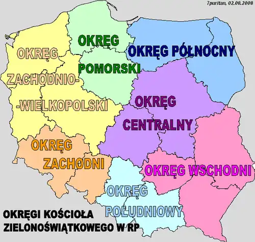 | 7. | zachodnio-wielkopolski | lubuskie, wielkopolskie, zachodniopomorskie | pastor Stanisław Cieślar | 38 |