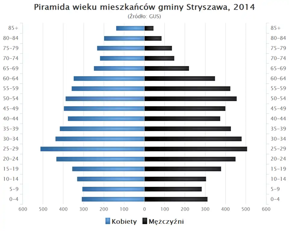 - Piramida wieku mieszkańców gminy Stryszawa w 2014 roku[1].