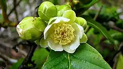 - Obupłciowe, drobne (o średnicy 0,5–3 cm), zebrane w grono szczytowe lub wyrastające w kącie liścia. Działki kielicha zwykle w liczbie od 4 do 5, trwałych. Płatki korony białe, w liczbie od 3 do 5. Owocolistki wolne, osadzone są na płaskim dnie kwiatowym[6]. Pręciki są liczne. Charakterystyczne są nitki pręcikowe – w górze maczugowato zgrubiałe, ze zbiegającymi skośnie workami pyłkowymi[7].