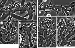 Istnieją też strzępki z krótkimi i nierozgałęzionymi wyrostkami noszącymi nazwę kołków strzępkowych[3].