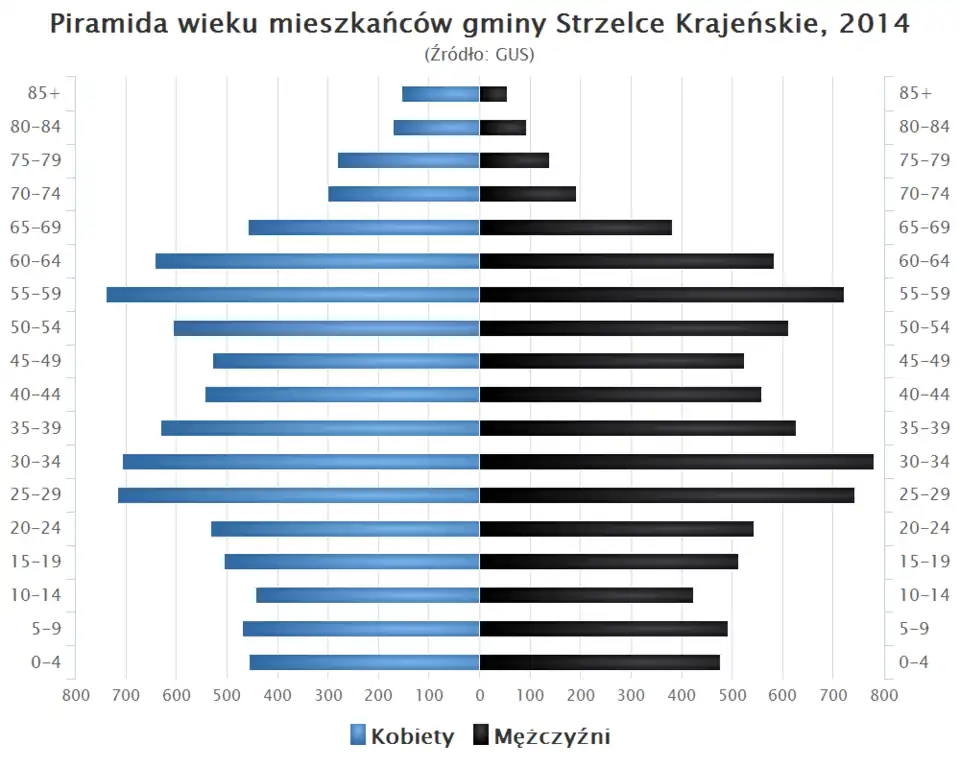 - Piramida wieku mieszkańców gminy Strzelce Krajeńskie w 2014 roku[4].