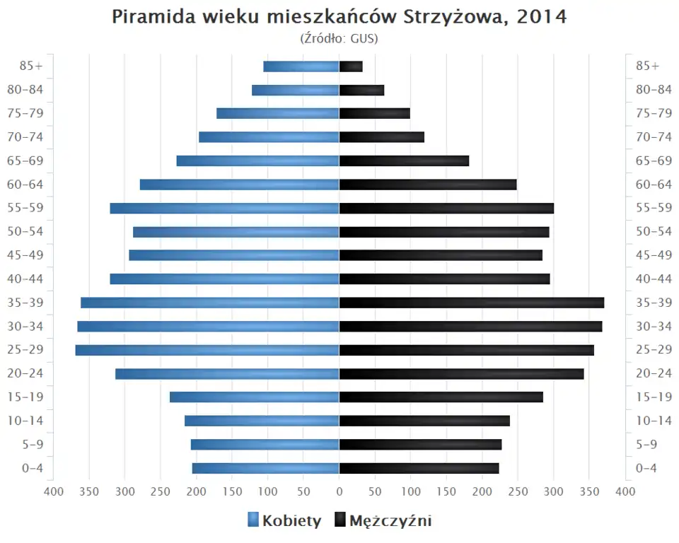 - ↑ Strzyżów w liczbach [online], Polska w liczbach [dostęp 2016-01-11], liczba ludności na podstawie danych GUS.