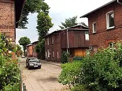 Osiedle ma bardzo charakterystyczną zabudowę. Tworzy je siedem krótkich uliczek, między al. Grunwaldzką, a torami kolejowymi. Wzdłuż każdej z nich znajdują się niewielkie, zabytkowe domy z czerwonej cegły. Zostały zbudowane przez fundację dr Georga Abegga, w latach 1895–1905[1]. Powstały na ówczesnych przedmieściach Gdańska, ponieważ w Śródmieściu brakowało w tym czasie terenów pod zabudowę. Była to największa inwestycja tej fundacji. Powstało ponad 50 bliźniaczych, wolno stojących domków robotniczych, które mieściły 108 mieszkań. Każde składało się z dwóch pokoi, kuchni, ubikacji i piwniczki. Po zakwaterowaniu, mieszkańcy byli zobowiązani do ratalnego spłacania nieruchomości[2].