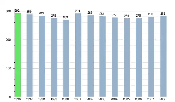 Zmiany liczby ludności w miejscowości Studená od 1996 roku.