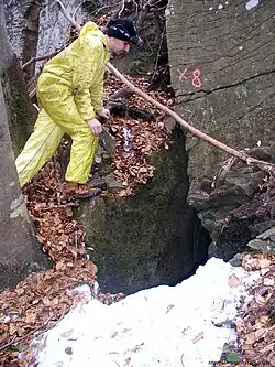 Główną częścią jaskini jest studnia o głębokości 4,5 metrów zaczynająca się w dużym otworze wejściowym. Z jej dna odchodzi wysoki i wąski szczelinowy korytarz, w którego połowie znajduje się 3,5-metrowy próg. Nad progiem znajduje się wejście do 4-metrowego, szczelinowego korytarzyka[1].