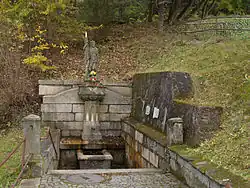 | Svatováclavský pramen | Jílové u Prahy, powiat Praga-Zachód | Nad mającym lecznicze właściwości mineralnym źródłem ustawiono w początku XVIII wieku kapliczkę, obok której w połowie tego stulecia rozwinęło się uzdrowisko, należące do najstarszych w Czechach. W 1778 lekarz Karel Födiš pisał, iż woda tutejsza pomaga na bóle kończyn dolnych, wątroby, nerek, na podagrę, przeziębienie i choroby oczu. Źródło jest uchwycone w rurę, która doprowadza wodę do kapliczki, gdzie wypływa ona na zewnątrz i zasila pobliski staw rybny. Nie nadaje się do picia. | ![]() |