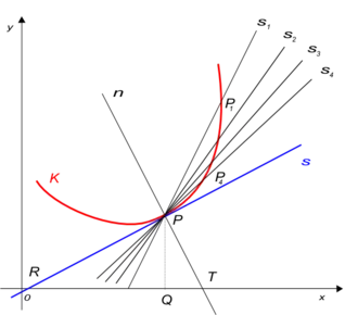 Prosta styczna do krzywej w punkcie to prosta, która jest granicznym położeniem siecznych przechodzących przez punkty i gdy punkt dąży (zbliża się) do punktu po krzywej [1].