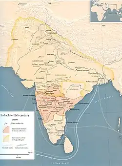 Niebawem jednak doszło do wojen pomiędzy sojusznikami. W 1574 Ahmadnagar podbił Berar, ale już w 1596 musiał się go zrzec na rzecz Wielkich Mogołów. W 1619 podobny los spotkał Bidar, który został siłą wcielony do sułtanatu Bidźapuru. Zwaśnione państwa nie zdołały się oprzeć nowej potędze, która wyrosła na północy. Najpierw szereg kampanii pomiędzy 1616 i 1636, prowadzonych przez Dżahangira i jego następcę Szahdżahana, doprowadził do aneksji Ahmadnagaru przez Wielkich Mogołów. Golkonda i Bidźapur opierały się pół wieku dłużej, ale w walkach przeciwko Aurangzebowi zostały pobite i w latach 1686–87 zostały także włączone do państwa Mogołów. Większość południowych Indii na krótko zostały ponownie scalone w jednym państwie, ale stały się tylko częścią składową nowego, olbrzymiego imperium.