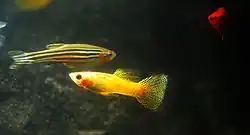 Przykładem subfunkcjonalizacji jest gen Hoxb1, który uległ podwojeniu u przodka danio[3]. U ssaków występuje pojedynczy gen Hoxb1, odgrywający ważną rolę w rozwoju[5]. U myszy gen ten ulega ekspresji w tyłomózgowiu w sposób ciągły. U danio jest inaczej. Początkowo włącza się gen Hoxb1a, który działa do 10 h po zapłodnieniu, a po tym czasie zaczyna ulegać ekspresji Hoxb1b. Zwróciwszy uwagę na budowę pierwotnego genu Hoxb1, dostrzega się w nim sekwencje wzmacniające położone zarówno w kierunku 5', jak i 3'. Natomiast pary tych enhancerów nie znajdzie się razem w genach Hoxb1a ani Hoxb1b dania. Pierwszy z tych genów zachował jedynie sekwencję wzmacniającą powyżej genu, a drugi – poniżej[3].