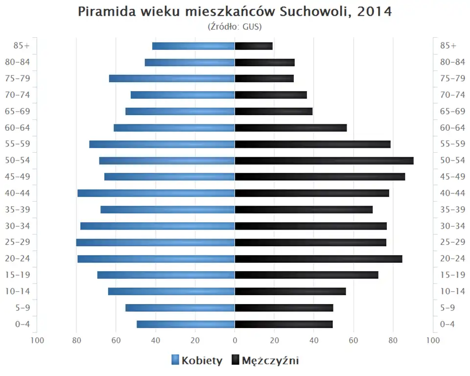 - Piramida wieku mieszkańców Suchowoli w 2014 roku[12].