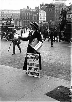 Większość sufrażystek stosowała metody nieposłuszeństwa obywatelskiego, protesty, petycje, dążyła do przemian świadomościowych. Wyodrębniło się również skrzydło radykalne, zwane sufrażetkami, stosujące ostre formy protestu i przemoc[2]. Uciekały się one do takich działań jak przykuwanie się łańcuchami do ogrodzeń, przerywanie wystąpień przeciwników politycznych czy akty przemocy jak podpalenia skrzynek pocztowych, pustych budynków lub wybijanie szyb w oknach wystawowych. Ruch sufrażystowski miał także swoje intelektualne oblicze, dla którego w Anglii ważnym wsparciem był John Stuart Mill.