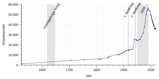 U schyłku II wojny światowej 3 kwietnia 1945 do miasta wkroczyły wojska amerykańskie, a 1 lipca miasto znalazło się w radzieckiej strefie okupacyjnej.