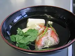 Suimono (jap. 吸物) - japońska klarowna zupa, sporządzana z wodorostów kombu (różne gatunki listownicy), wiórków ryby bonito, sake, shōyu i suszonych sardynek. Często podaje się ją również z podsmażonymi krewetkami.