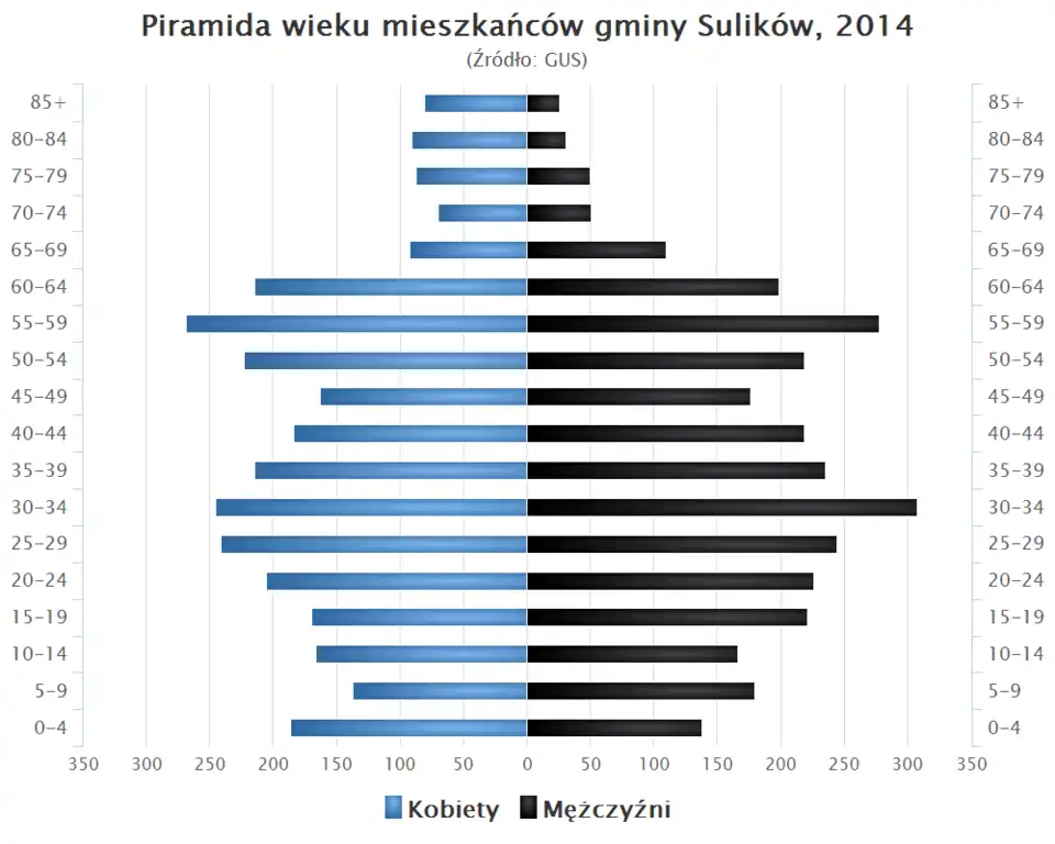 - Piramida wieku mieszkańców gminy Sulików w 2014 roku[1].