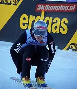 - ↑ Jako pierwszy w historii wygrał wszystkie konkursy. W 66. Turnieju Czterech Skoczni jego osiągnięcie powtórzył Kamil Stoch, a w 67. Turnieju Czterech Skoczni Ryōyū Kobayashi.